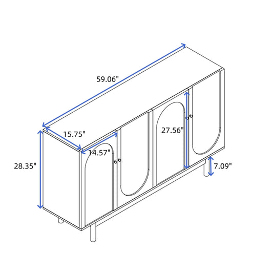 4 Door Cabinet With Adjustable Shelves, Large Storage For Living Room - Champagne