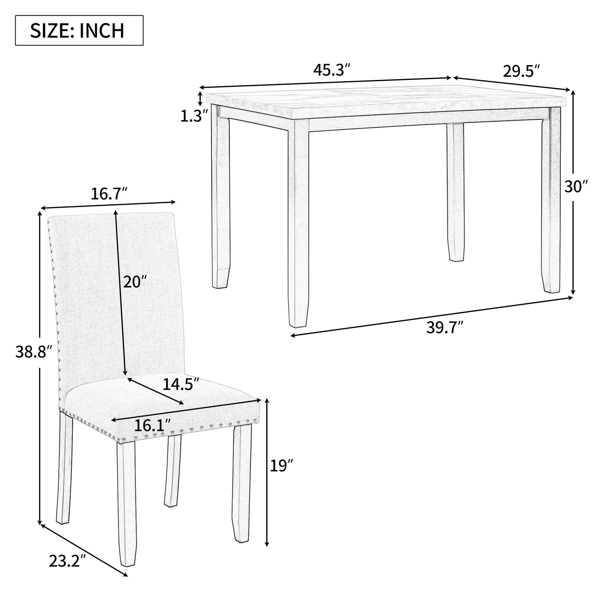 - Elegance and Modern Style: Faux marble top and rubber wood frame offer a modern and glossy look.