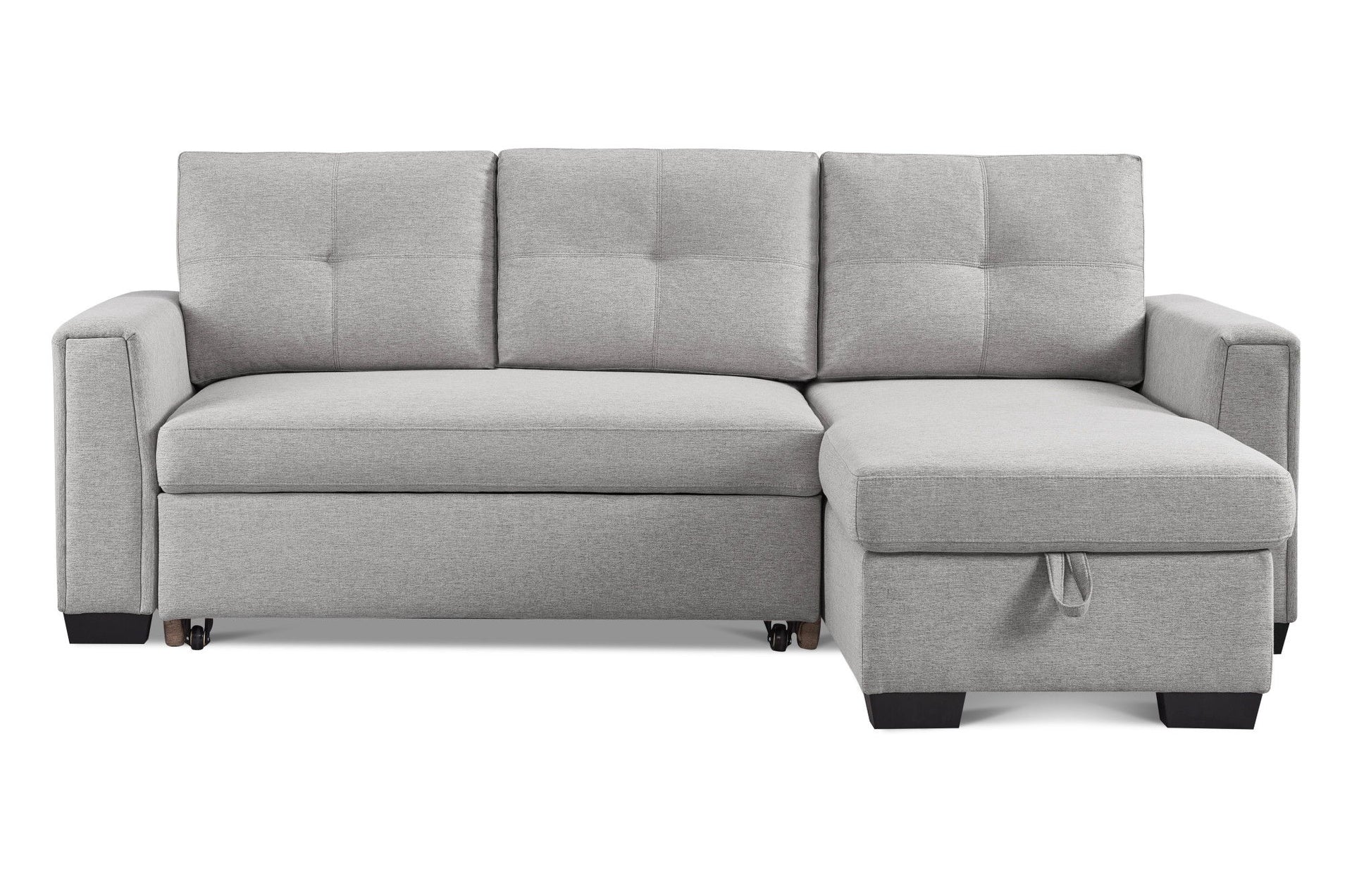 Polyester Blend Convertible Futon Sleeper Sofa With Black Legs - Light Gray