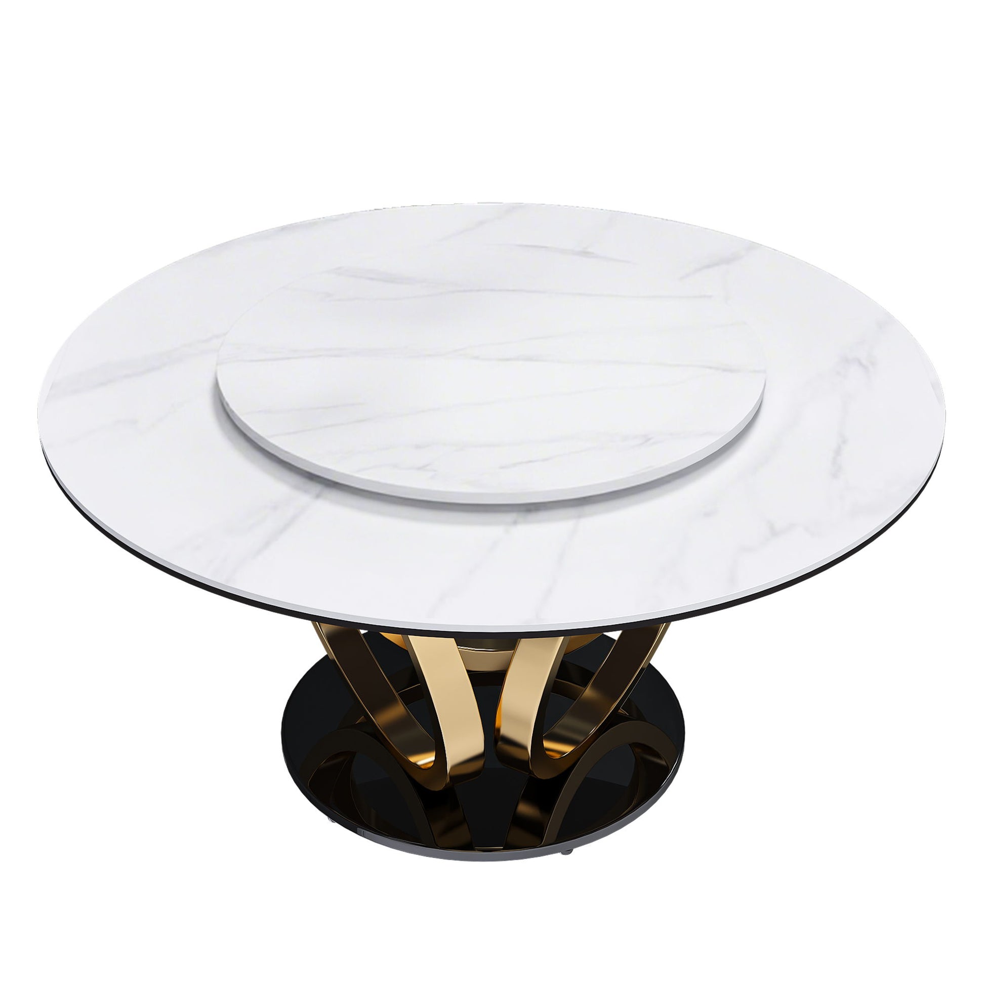Round Dining Table With 360° Smooth Lazy Susan Stain / Heat - Gold / Black / White